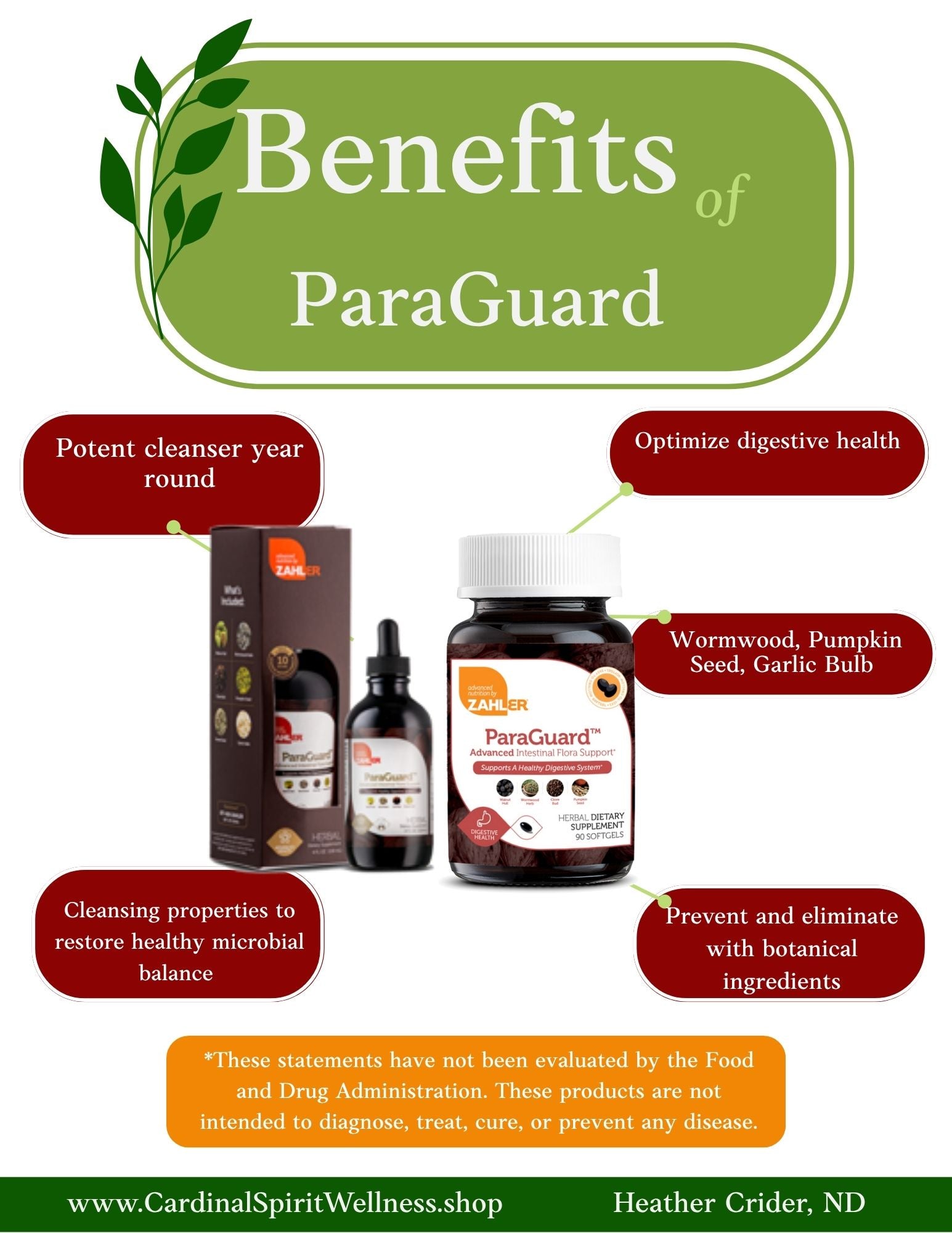 ParaGuard is a super-strength formula which contains a unique blend of herbs such as Wormwood, Pumpkin Seed, Garlic Bulb and more, all of which optimize digestive flora and support a healthy intestinal balance. These herbs have traditionally been used to support and restore vitality to digestion and microbial balance. ParaGuard is oftentimes used as a potent cleanser for year round use.