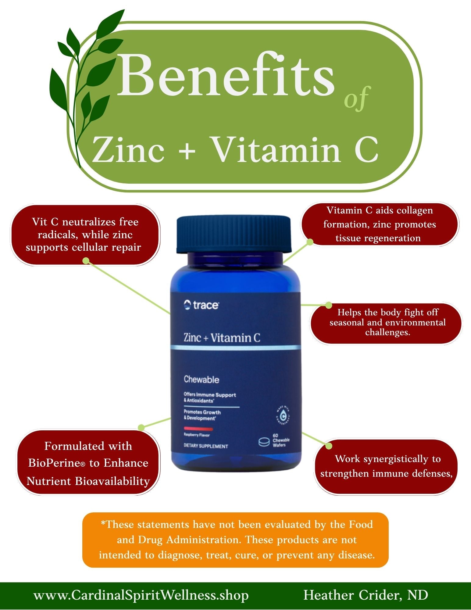 Immune System Defense – Vitamin C and zinc work together to enhance immune cell activity, helping your body stay resilient during seasonal changes.